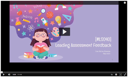 Lim, S. (2021). Leading assessment feedback [Video]. Assessment for All Learners (AfAL) Bulletin, July 2021. https://assessmentforall.blogspot.com/search/label/Featured
